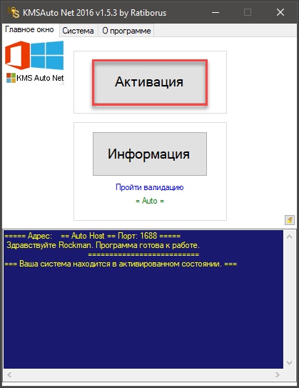 Открыв КМСАуто, в главном окне пользователь обнаружит две кнопки – «Активация» и «Информация».