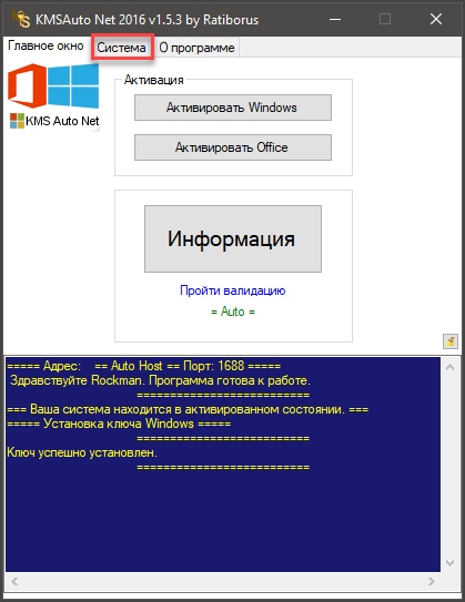 Для проведения ручной активации нужно сначала открыть вкладку «Система».