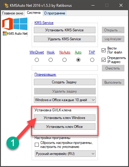 - /taskrun=yes — Старт программы в invisible mode, выполнение задания в диспетчере Task Manager по активации Windows/Microsoft Office и закрытие программы
