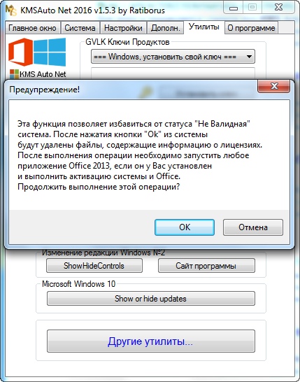 Система также может быть активирована, если она избавится от статуса «не валидной». Такой способ подразумевает удаление некоторых системных файлов с данными о лицензиях.